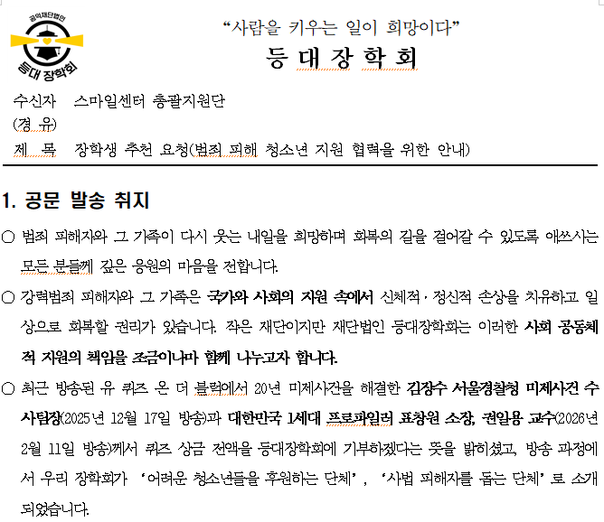 공익 재단법인 ‘등대장학회’는